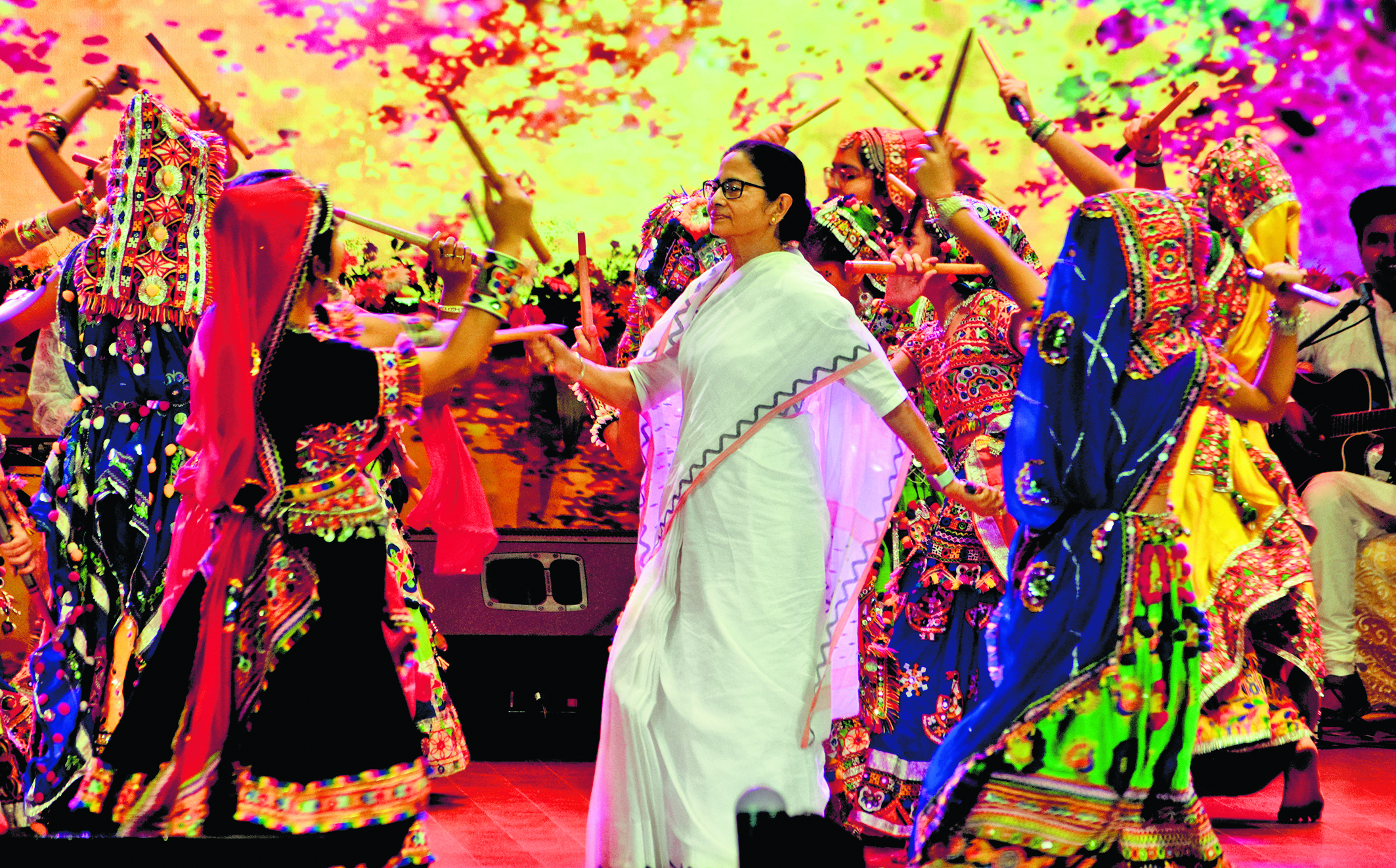 बोलीं मुख्यमंत्री : शांति और प्यार के रंग से मनायें होली कोलकाता. बुधवार को अलीपुर के धनधान्य ऑडिटोरियम में राज्य सरकार के आइ एंड सी विभाग द्वारा ‘दोलजात्रा-ओ होलीर-मिलन उत्सव’ का आयोजन किया गया, जिसमें राज्य के विभिन्न संगठनों व धर्मों के प्रतिनिधियों ने भाग लिया. होली के आकर्षक गीत-संगीत व नृत्य से समारोह की शुरुआत की गयी. इस मौके पर मुख्यमंत्री ममता बनर्जी ने सभी को धन्यवाद देते हुए अपने भाषण की शुरुआत की. होली की शुभकामनाएं देते हुए मुख्यमंत्री ने कहा कि इस वर्ष दोल और होली एक ही दिन पड़ रहे हैं. रमज़ान का महीना भी चल रहा है. यह त्यौहारों का मौसम है. मेरा आवेदन है कि सब लोग साथ रहें और अपने मन को रंगीन रखें. होली रंगों का उत्सव है और अपने दिल को भी आपको कलरफुल रखना होगा. कलरफुल तभी रहेगा, जब मन शांत होगा. मन शांत होगा तो राज्य में शांति रहेगा. हम संघर्ष नहीं, शांति चाहते हैं. अगर बंगाल अच्छा होगा तो देश भी अच्छा होगा, इसलिए अपने दिल को कलरफुल बनाते हुए प्यार व शांति का रंग भरकर उत्सव मनाएं. मुख्यमंत्री ने कहा कि पर्व के सीजन में किसी को भी किसी के उकसावे में आने की जरूरत नहीं है. कोई कुछ भी कहे, उस पर ध्यान देने की जरूरत नहीं है. हम लोग शांति चाहते हैं. लोगों से सांप्रदायिक प्रेम व सौहार्द बनाये रखने की अपील करते हुए मुख्यमंत्री ने इशारा किया कि आग खाना पकाने के लिए है, उसका इस्तेमाल अशांति फैलाने में नहीं होनी चाहिए. मुख्यमंत्री ने कहा कि पश्चिम बंगाल नेपाल, बंगलादेश, भूटान का गेटवे है. मुख्यमंत्री ने कहा- अगले साल दोल उत्सव नेताजी इंडोर स्टेडियम में मनाया जायेगा, ताकि ज्यादा से ज्यादा लोग इसमें भाग ले सकें. बुधवार को रंग-बिरंगे नृत्य-गीतों के साथ-साथ गुजरात के गरबा और डांडिया ने भी उत्सव को मनाेरंजक बना दिया. सांस्कृतिक कार्यक्रम में पहले डांस ग्रुप के साथ मंच पर ममता ने डांडिया नृत्य कर होली उत्सव का आगाज किया. इसके बाद सिक्ख समुदाय व बेहला गुरुद्वारा से आये प्रतिनिधियों ने ऑडिटोरियम में भांगड़ा शुरू कर दिया, तब मुख्यमंत्री ने मंच से उतरकर उनके साथ डांस किया, जिससे लोगों में काफी उत्साह देखा गया. यहां मुख्यमंत्री ममता बनर्जी ने सिख समुदाय के प्रतिनिधियों के साथ, दलेर मेहंदी के ”बोलो तारा रा रा” गाने पर भांगड़ा करते हुए उनका उत्साह बढ़ाया. लोग तालियां बजाकर उनका अभिनंदन करते रहे.