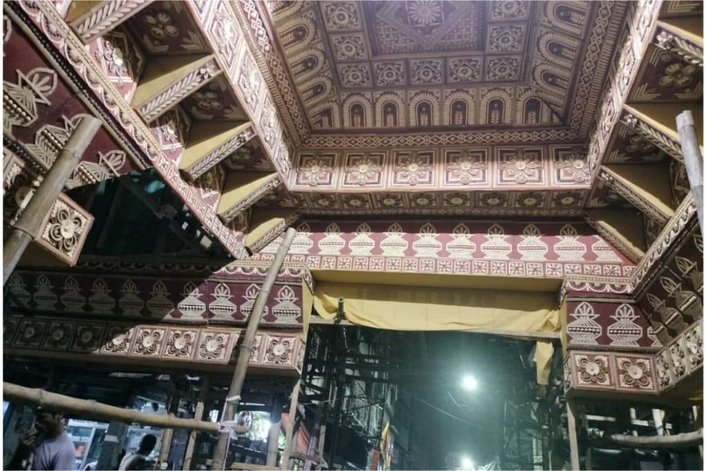 रामेश्वर मालिया लेन में इको-फ्रेंडली सामग्रियों से बन रहा पंडाल