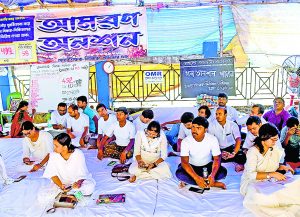 सुप्रीम कोर्ट के आदेश पर नौकरी गंवाने वाले योग्य बेरोजगार शिक्षकों ने शिक्षा विभाग के कार्यालय विकास भवन के सामने प्रदर्शन किया था. इस दौरान हुई तोड़फोड़ की घटना के संबंध में कलकत्ता हाइकोर्ट ने पुलिस को इन प्रदर्शनकारियों के खिलाफ कोई सख्त कार्रवाई न करने का आदेश दिया था. इसके बावजूद शिकायत है कि बिधाननगर उत्तर थाने की पुलिस द्वारा आरोपियों को लगातार नोटिस भेजे जा रहे हैं. इसी शिकायत के मद्देनजर न्यायमूर्ति तीर्थंकर घोष ने शुक्रवार को आदेश दिया कि जिन व्यक्तियों को ऐसे नोटिस मिले हैं, वे इन्हें रद्द कराने के लिए हाइकोर्ट में दोबारा आवेदन कर सकते हैं. न्यायाधीश ने कहा कि ये व्यक्ति या तो व्यक्तिगत रूप से या सभी एक साथ वकील के माध्यम से यह आवेदन दायर कर सकते हैं. गौरतलब है कि दो योग्य बेरोजगार शिक्षक चिन्मय मंडल और संगीता घोष ने शुक्रवार को हाइकोर्ट में शिकायत की थी कि कोर्ट के आदेश के बावजूद उच्च शिक्षा विभाग भी उन्हें नोटिस भेज रहा है. याचिकाकर्ताओं के वकील राजदीप मजूमदार ने इस मामले में दर्ज मूल प्राथमिकी को खारिज करने की मांग की. हालांकि, न्यायाधीश ने शुक्रवार को कहा कि वह नोटिस से संबंधित याचिका पर सुनवाई के बाद इस पर विचार करेंगे.