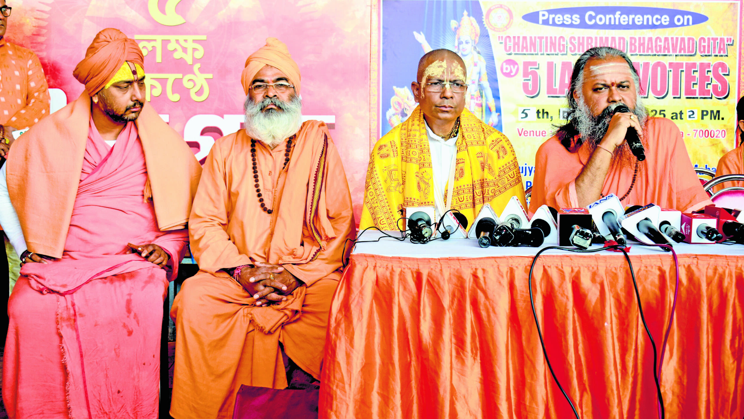 कार्तिक महाराज ने बताया कि इस कार्यक्रम का राजनीति से कोई संबंध नहीं है. उद्देश्य केवल आम लोगों तक सनातन की मूल भावना और गीता के संदेश को पहुंचाना है. कार्यक्रम में शामिल होने के लिए किसी प्रकार का पंजीकरण आवश्यक नहीं है. हर इच्छुक व्यक्ति आ सकता है. ब्रिगेड परेड ग्राउंड में आयोजन स्थल पर कुल 25 गेट बनाये जा रहे हैं और पूरा परिसर अर्ध चंद्राकार संरचना में तैयार किया जा रहा है. सभी प्रतिभागियों को गीता की प्रति नि:शुल्क दी जायेगी.पार्थ सारथी, चैतन्य और शंकराचार्य तीन मंच बनाये गये हैं, जिन पर क्रमशः प्रथम, नवम और 18वें अध्याय का पाठ होगा. सुबह आठ बजे वैदिक पाठ का संचालन रवींद्रनाथ भट्टाचार्य करेंगे, जो कलकत्ता विश्वविद्यालय के डीन रहे हैं. 9.30 बजे से प्रवचन शुरू होगा और 11.30 बजे तक जारी रहेगा. शंख ध्वनि और उल्लू ध्वनि के साथ पूरे परिसर का माहौल आध्यात्मिक बनाया जायेगा. 12.30 बजे तक सामूहिक गीता पाठ पूरा होगा और अंत में गीता पाठ के उद्देश्य का संकल्प पाठ कराया जायेगा.