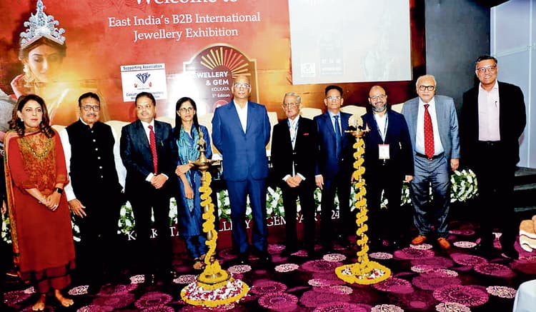 कोलकाता आभूषण एवं रत्न मेले (केजेजीएफ) के पांचवें संस्करण की शुरुआत शनिवार को हुई. इसमें पूर्वी भारत की समृद्ध आभूषण विरासत और वैश्विक बाजार में इसके विकास पर प्रकाश डाला गया. इसका उद्देश्य इस क्षेत्र को 43 अरब डॉलर से अधिक के राष्ट्रीय उद्योग में महत्वपूर्ण बाजार हिस्सेदारी बनाए रखने में मदद करना है, जो 17 प्रतिशत की सालाना दर से बढ़ रहा है. तीन दिवसीय इस कार्यक्रम का उद्घाटन राज्य के मुख्य सचिव मनोज पंत और पश्चिम बंगाल औद्योगिक विकास निगम (डब्ल्यूबीआइडीसी) की प्रबंध निदेशक वंदना यादव ने किया. यह कार्यक्रम 25 नवंबर तक चलेगा.