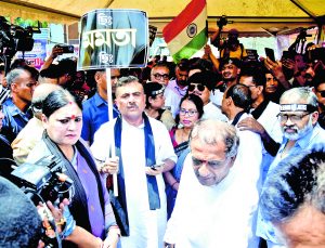 उन्होंने दावा किया कि बंगाल में भाजपा की सरकार बनने के बाद ही सभी आरोपी जेल में होंगे. कोलकाता के बीच शहर में तीन घंटे तक चले धरने के बाद शुभेंदु अधिकारी ने नबान्न अभियान वापस लेने की घोषणा की. पार्क स्ट्रीट-जवाहर लाल नेहरू रोड चौराहे पर प्रदर्शन खत्म करते हुए अधिकारी ने बताया कि यह निर्णय पीड़िता की मां के अस्पताल में भर्ती होने और अन्य कारणों से लिया गया. उन्होंने आरोप लगाया कि पुलिस ने बर्बरतापूर्वक लाठीचार्ज किया, जिसमें पीड़िता की मां के माथे पर चोट आयी. अधिकारी ने कहा : पीड़िता के माता-पिता मेरे आमंत्रण पर रैली में शामिल हुए थे, इसलिए उनकी देखभाल करना मेरा कर्तव्य है. उन्होंने पुलिस की कार्रवाई को लोकतंत्र और महिलाओं की सुरक्षा के प्रति असम्मानजनक बताया और कहा कि आंदोलन के अगले चरण की घोषणा बाद में की जायेगी.