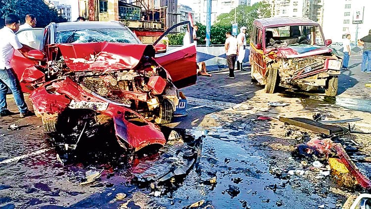 कोलकाता. महानगर के एजेसी बोस फ्लाईओवर पर सोमवार सुबह दो वाहनों के बीच हुई आमने-सामने की भिड़ंत में कई लोग घायल हो गये. घायलों में चार की हालत गंभीर बतायी जा रही है. उधर, खबर पाकर स्थानीय थाने की पुलिस मौके पर पहुंची और घायलों को अस्पताल पहुंचाया. साथ ही दुर्घटनाग्रस्त वाहनों को अपने कब्जे में ले लिया. पुलिस के मुताबिक, सोमवार सुबह एक टाटा सूमो पीटीएस से एजेसी बोस फ्लाईओवर होते हुए सेक्टर पांच की ओर आ रहा थी. उसमें आइटी कंपनी के 9 से 10 कर्मचारी सवार थे. इसी बीच विपरीत दिशा से आयी टाटा नेक्सन कार, टाटा सूमो से टकरा गयी. हादसे के समय दोनों वाहनों रफ्तार तेज थी. टक्कर इतनी जोरदार थी कि दोनों वाहनों का आगे का हिस्सा बुरी तरह क्षतिग्रस्त हो गया. कार की फ्रंट सीट का एयरबैग तक बाहर निकल गया था.