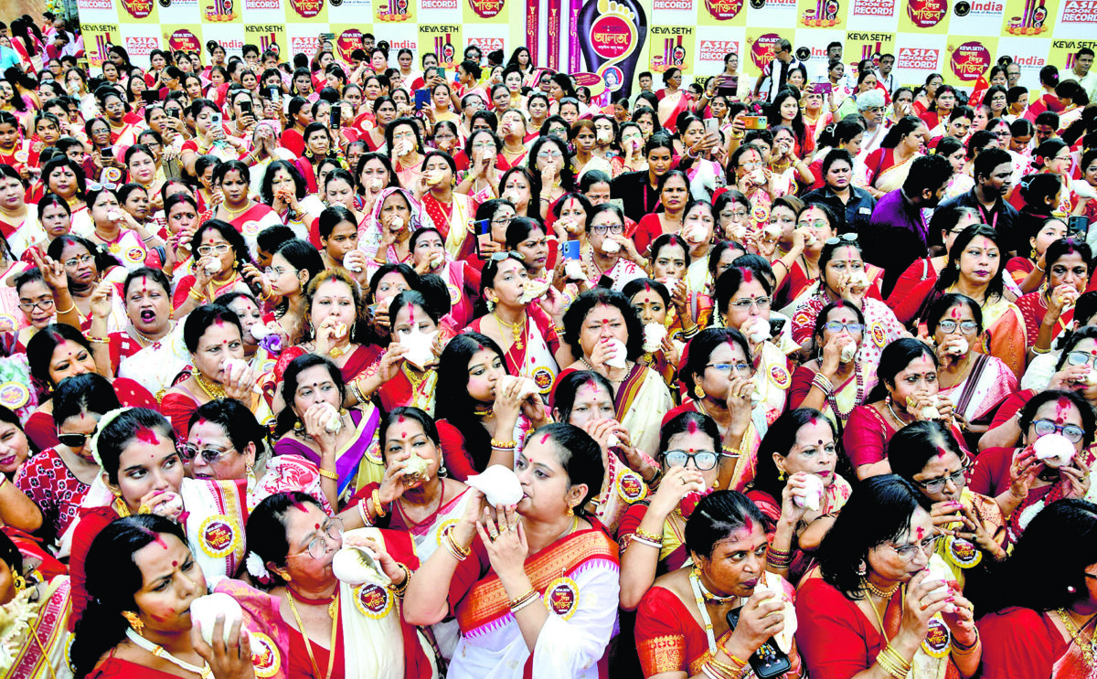 कोलकाता में रविवार को महालया पर महिलाओं ने एक साथ शंख बजाकर इतिहास रच दिया. केया सेठ आलता सिंदूर ‘शक्ति आराधना’ को एशिया बुक ऑफ रिकॉर्ड्स और इंडिया बुक ऑफ रिकॉर्ड्स में दर्ज किया गया.