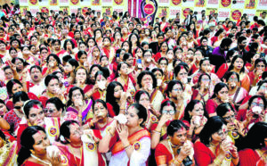 कोलकाता में रविवार को महालया पर महिलाओं ने एक साथ शंख बजाकर इतिहास रच दिया. केया सेठ आलता सिंदूर ‘शक्ति आराधना’ को एशिया बुक ऑफ रिकॉर्ड्स और इंडिया बुक ऑफ रिकॉर्ड्स में दर्ज किया गया. देशप्रिय पार्क दुर्गोत्सव में पारंपरिक साड़ी, आलता और सिंदूर से सजीं 672 महिलाएं देवी पक्ष का स्वागत करने के लिए एकत्रित हुईं और एक साथ बजाये गये 672 शंखों की गड़गड़ाहट से वातावरण गूंज उठा. इस मौके पर अरोमाथेरेपी की संस्थापक केया सेठ ने कहा कि ऐसा नजारा पहले कभी किसी ने नहीं देखा होगा.यहां एक विशाल नारी शक्ति ने मां दुर्गा के आगमन का अभिनंदन किया.