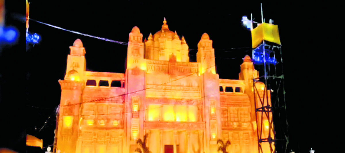 कैनिंग : जोधपुर पैलेस थीम व लेजर शो ने बढ़ाया दुर्गोत्सव का आकर्षण