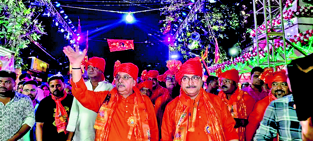 हुगली. चंदननगर के पुलिस कमिश्नर अमित पी जवालगी के चौकसी की वजह से शांतिपूर्ण तरीके से पूरे कमिश्नरेट क्षेत्र में रामनवमी की जुलूस निपट गयी. रामनवमी के पावन अवसर पर बुधवार को चंदननगर, भद्रेश्वर और चांपदानी के अलावा अन्य क्षेत्रों में भव्य शोभायात्राएं निकाली गयीं. चंदननगर की सड़कों पर जहां अस्त्र-शस्त्र के साथ श्रद्धालुओं का उत्साह उमड़ा, वहीं चांपदानी की शोभायात्रा में खास दृश्य देखने को मिला. सत्ता पक्ष के लोग गेरुआ वस्त्र में दिखे. यहां श्रीरामपुर के सांसद कल्याण बंद्योपाध्याय गेरुआ पंजाबी और पगड़ी में पारंपरिक वेशभूषा के साथ शामिल हुए. उनके साथ नगरपालिका चेयरमैन सुरेश मिश्रा, पार्षद सूरज गुप्ता सहित कई अन्य जनप्रतिनिधि भी शामिल हुए. यात्रा के दौरान राम और हनुमानजी की पूजा-अर्चना और आरती की गयी. कल्याण बंद्योपाध्याय और सुरेश मिश्रा ने श्रद्धालुओं के बीच लड्डू का वितरण भी किया. रामभक्तों की भारी भीड़ ने जय श्रीराम के जयघोष से वातावरण गुंजायमान कर दिया. इस मौके पर भाजपा नेता सुरेश साव ने तंज कसते हुए कहा, जब लोगों पर मुसीबत आती है, तभी वे राम और हनुमान को याद करते हैं. आज तृणमूल कांग्रेस और सांसद कल्याण बंद्योपाध्याय का समय ठीक नहीं चल रहा है, इसलिए पूजा-पाठ और लड्डू वितरण कर रहे हैं. शोभायात्रा के माध्यम से एक ओर जहां धार्मिक आस्था की अभिव्यक्ति हुई, वहीं राजनीति की हल्की गर्माहट भी दिखाई दी.