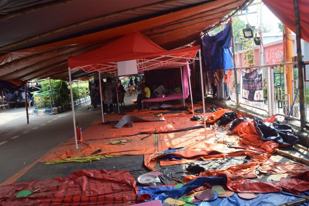 आरजी कर में हुई जूनियर डॉक्टर दुष्कर्म-हत्या की घटना की शिकार प्रशिक्षु डॉक्टर को न्याय दिलाने के लिए जूनियर डॉक्टर सॉल्टलेक स्थित राज्य स्वास्थ्य विभाग के कार्यालय ‘स्वास्थ्य भवन’ से 100 मीटर दूर धरना पर बैठे हैं. धरना-प्रदर्शन के लिए जूनियर डॉक्टरों ने पंडाल तैयार करवाया था. उसी पंडाल के नीचे वे धरना दे रहे थे. 10 दिन से उनका धरना जारी है.