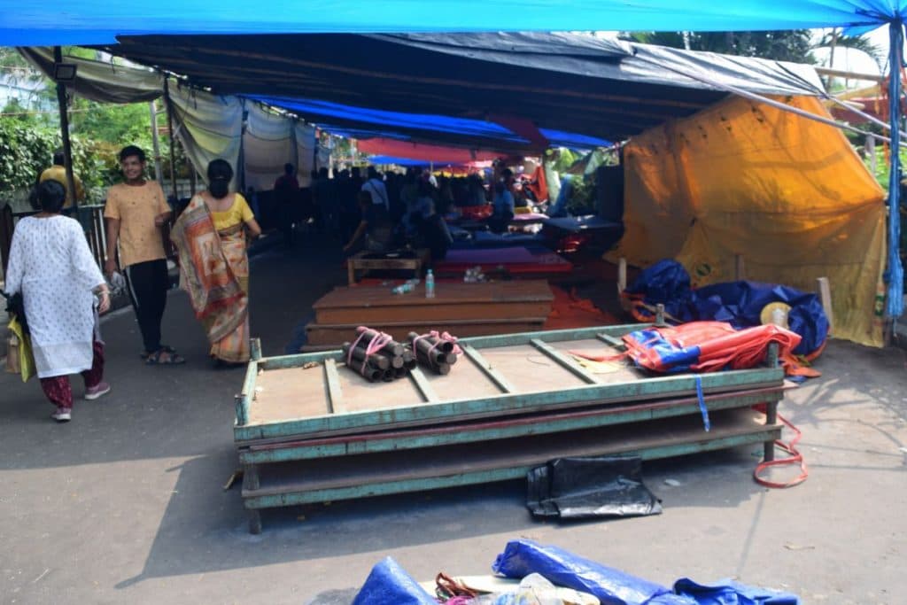 एक चिकित्सक ने बताया कि बुधवार की रात से पंडाल व बॉयो टॉयलेट को हटाने की प्रक्रिया जारी है. कुछ तंबू लगानेवालों ने स्वेच्छा से तंबू, पंखे, बांस की बल्लियां और बिस्तर उपलब्ध करवाए थे. जब उनसे पूछा गया कि वे क्यों अपना सामान वापस ले जा रहे हैं, तो उन्होंने बताया कि जल्द ही वे इन्हें बदल देंगे, क्योंकि अभी उन्हें दुर्गापूजा पंडाल लगाने के लिए इनकी जरूरत है.