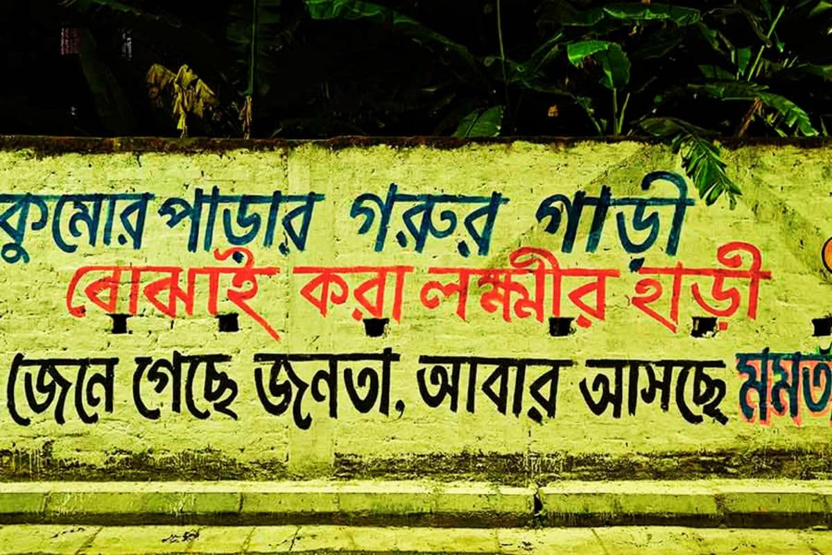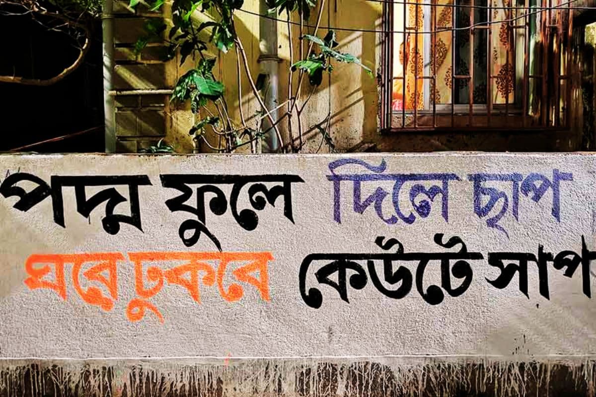 व्यंग्य, राइमिंग और मीम्स, दीवारों पर ‘खेला’ : इस बार की वॉल ग्राफिटी पारंपरिक नारों से काफी आगे निकल गयी है. तृणमूल कांग्रेस, भाजपा और वामदलों के समर्थक एक-दूसरे को घेरने के लिए मजेदार कविताओं और कार्टूनों का सहारा ले रहे हैं.