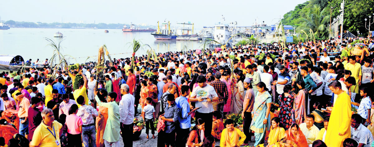 छठ पर्व के ‘संध्या अर्घ्य’ के दिन सोमवार शाम को समूचे कोलकाता में नदियों और अन्य जलाशयों के किनारे घाटों पर लाखों श्रद्धालुओं ने सूर्य देव को अर्घ्य दिया.