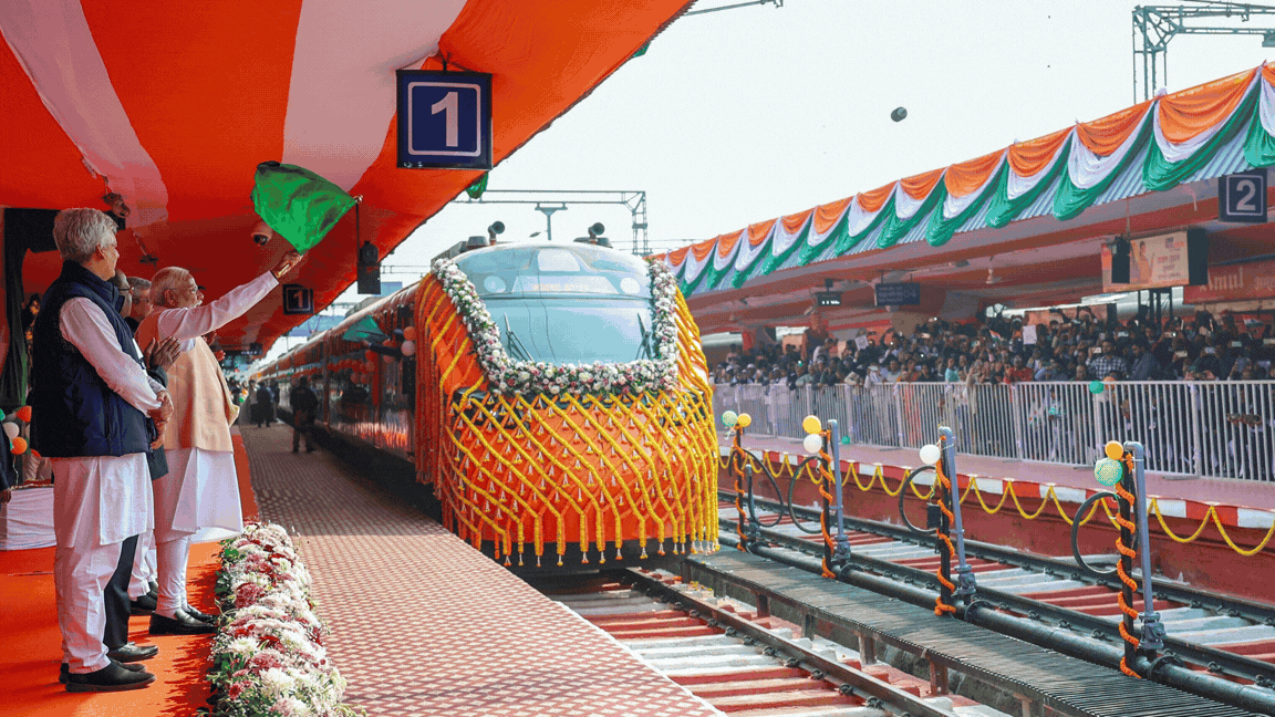 प्रधानमंत्री नरेंद्र मोदी ने पश्चिम बंगाल के मालदा टाउन स्टेशन से देश की पहली वंदे भारत स्लीपर ट्रेन को हरी झंडी दिखायी. इस अवसर पर प्रधानमंत्री ने कहा कि देश भर में वंदे भारत स्लीपर ट्रेनें चलेंगी. उन्होंने कहा कि आज भारत में तेजी से ट्रेनों के कोच बन रहे हैं. इससे भारत आत्मनिर्भर बन रहा है. पीएम मोदी ने क्या-क्या कहा, यहां पढ़ें.