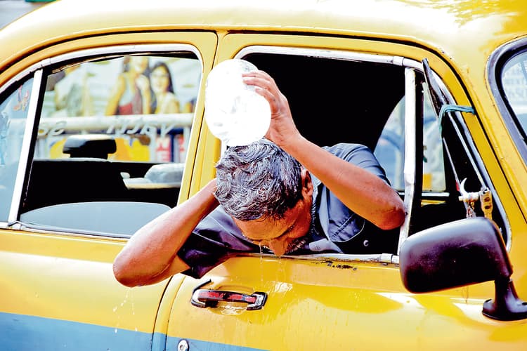 गर्मी ने लोगों का जीना मुहाल कर रखा है. महानगर समेत जिलों में भी तापमान 39 से 40 डिग्री सेल्सियस तक पहुंच गया है. गर्मी से परेशान ट्रैफिक पुलिस का जवान व टैक्सी ड्राइवर पानी से मुंह व सिर धोते हुए.