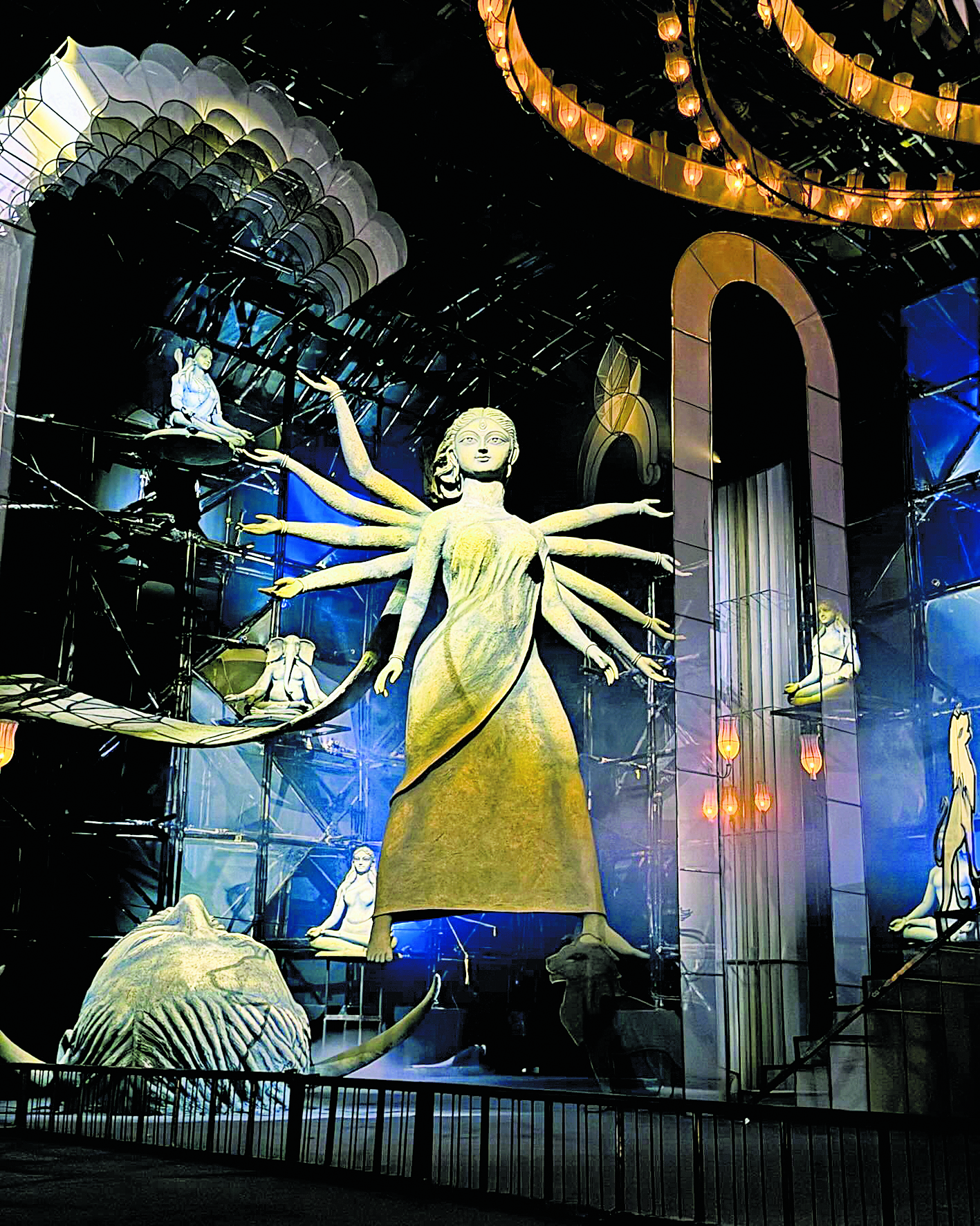 कोलकाता. केंदुआ शांति संघ ने निगुध थीम के साथ अपने 53वें दुर्गा पूजा थीम का अनावरण किया. निगुध एक बंगाली शब्द है, जिसका अर्थ है छिपा हुआ, अज्ञात या रहस्यमयी. पूजा समिति की सदस्य शाओनी सोम ने बताया कि इस साल दुर्गापूजा का शीर्षक है देवी की ओर एक रहस्यमय अंतहीन यात्रा. हम नहीं जानते कि हमारे देवता वास्तव में कैसे दिखते हैं और हम लोगों द्वारा बतायी गयी बातों पर भरोसा करते हैं. ईश्वर तक पहुंचने के लिए हम जो यात्रा करते हैं, यही इस साल का विषय है. पंडाल का मुख्य आकर्षण देवी दुर्गा का हवा में तैरता हुआ चित्रण है, जो चंद्रमा की भारहीनता से प्रेरित होकर गुरुत्वाकर्षण के अभाव का प्रतीक है.