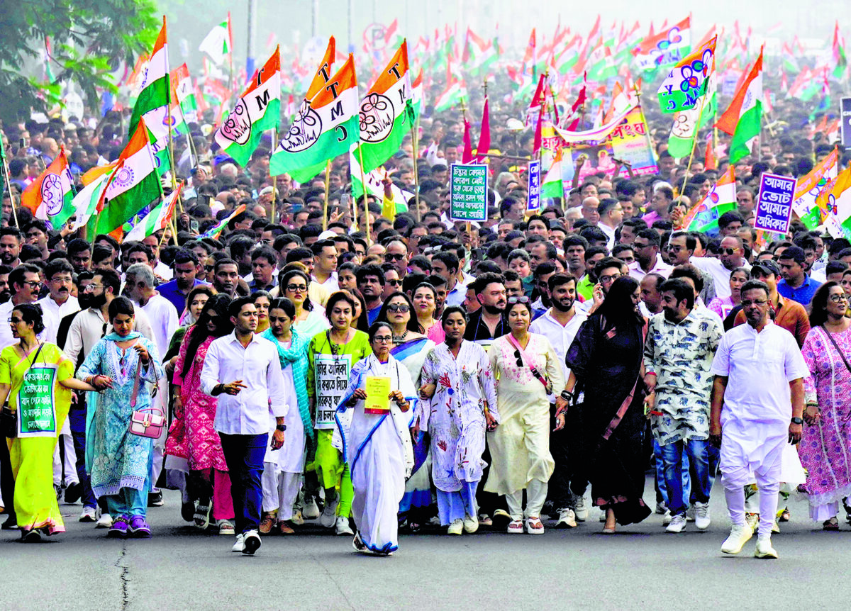 मुख्यमंत्री व तृणमूल कांग्रेस प्रमुख ममता बनर्जी ने मंगलवार को महानगर में मतदाता सूची के विशेष गहन पुनरीक्षण (एसआइआर) को लेकर महारैली का नेतृत्व किया.