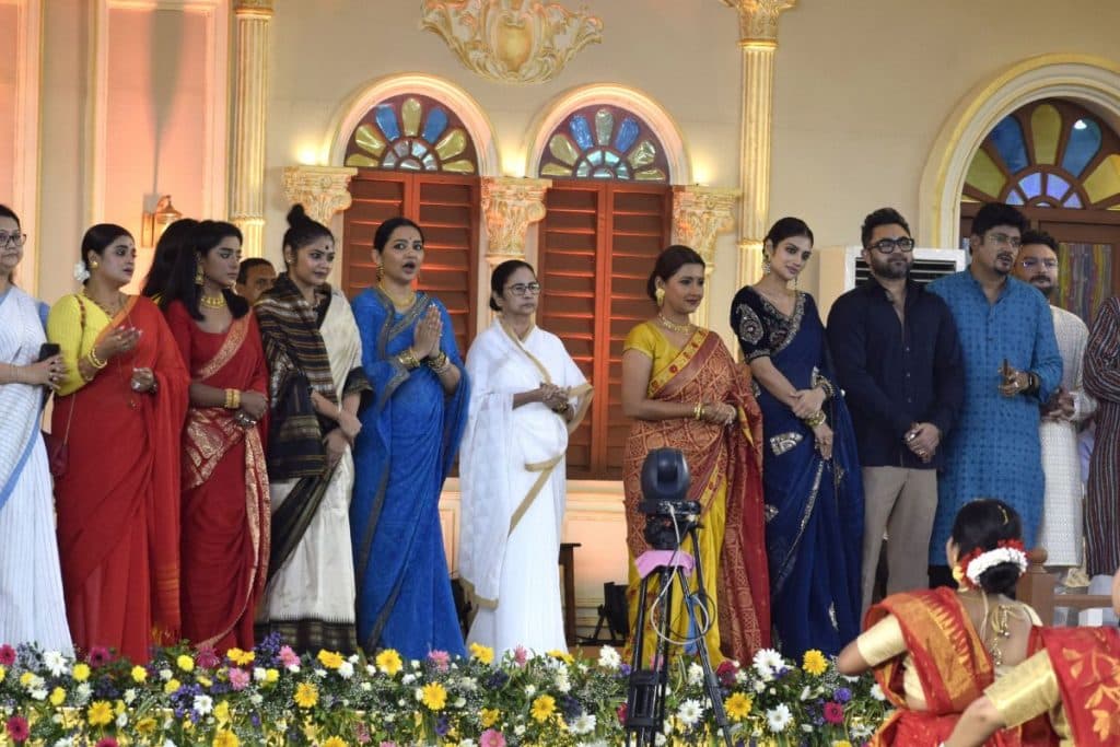 रेड रोड पर मुख्यमंत्री के लिए बनाये गये खास मंच पर ममता के साथ सांसद रचना बनर्जी, जून माल्या, अभिनेत्री नुसरत जहां, मेयर फिरहाद हकीम, मंत्री अरूप विश्वास समेत कई बड़ी अभिनेत्रियां व राजनेता ममता बनर्जी के बगल में खड़े नजर आये. इन अभिनेत्रियों ने उत्सव में संगीत की लय पर नृत्य भी किया.
