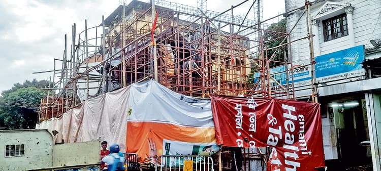कोलकाता. उत्तर कोलकाता क्षेत्र में स्थित मानिकतला चलताबागान लोहापट्टी का नाम चर्चित पूजा पंडालों में शुमार है. इस बार दुर्गापूजा समिति ने उत्तर कोलकाता के शोभाबाजार से श्यामबाजार तक की तंग गलियों को ही पूजा का थीम बनाया है. उत्तर कोलकाता की गलियां आज भी शताब्दी पुरानी यादें ताजा कर देती है. मानिकतला चलताबागान लोहापट्टी दुर्गा पूजा समिति का यह 83वां वर्ष पूजा है. इस बार के पूजा का बजट 35 लाख रुपये बताया गया है. पूजा का उद्धाटन द्वितीया के दिन किया जायेगा. इसी दिन, आगंतुकों के लिए पूजा पंडाल का द्वार खोल दिया जायेगा. मानिकतला चलताबागान लोहापट्टी दुर्गापूजा समिति के चेयरमैन संदीप भूतोड़िया, अध्यक्ष श्रृंजय बोस व महासचिव श्रमिक कुमार साहा पूजा के सफल आयोजन की तैयारियों में जुटे हुए हैं. बताया गया है कि मानिकतला चलताबागान लोहापट्टी दुर्गा पूजा समिति के पूजा पंडाल का डिजाइन अदिति चक्रवर्ती ने किया है. पूजा का थीम के संबंध में आयोजकों ने बताया कि महानगर में श्यामबाज़ार से शोभाबाज़ार तक इस क्षेत्र की संकरी गलियां केवल भौगोलिक परिभाषा तक सीमित नहीं हैं. ये शहर की नसें और शिराएं हैं, जहां शोरगुल के बीच छिपा रहता है जीवन का एक भीतरी संगीत. यहां की हर ईंट, हर धूल से ढंका झालरदार कोना स्मृतियों का वाहक है. पुराने झरोखों की दरारों में कबूतरों के घोंसले, पंखे की थकी हुई घरघराहट, दोपहर की नमी में कपड़े सुखाने की रस्सियों पर बैठी मैना-सब मिलकर समय का एक धुंधला स्थिर-चित्र बना देते हैं. इसी थीम को लेकर इस बार पूजा का आयोजन किया जा रहा है.