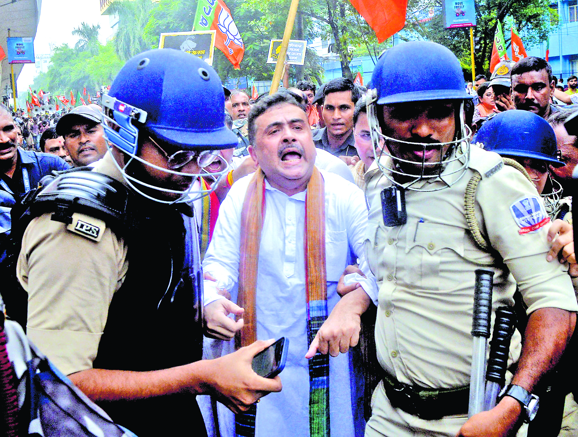 इधर, विधाननगर पूर्व थाने के सामने भी भाजपा समर्थकों ने कार्यकर्ताओं को हिरासत में लिये जाने के खिलाफ विरोध प्रदर्शन किया. डेढ़ घंटे बाद शुभेंदु समेत अन्य को छोड़ा गया. इस बीच, स्वास्थ्य भवन अभियान के दौरान पार्टी के कार्यकर्ताओं पर पुलिस द्वारा लाठीचार्ज करने के खिलाफ भाजपा ने शुक्रवार को राज्य भर के थानों का घेराव करने का आह्वान किया है.लाठी-गोली खानी पड़े, तो भी जारी रहेगा आंदोलन : सुकांत