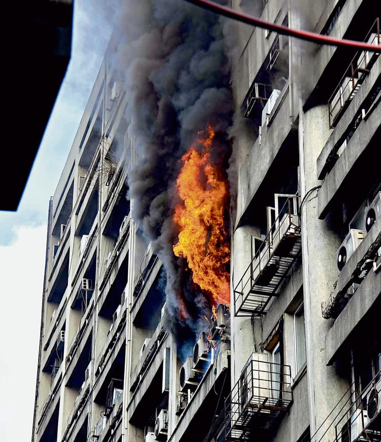 कोलकाता. दक्षिण कोलकाता के मिंटो पार्क के नजदीक सर्कस एवेन्यू स्थित ‘कृष्णा’ नामक बहुमंजिली इमारत की छठी मंजिल पर शनिवार दोपहर में भीषण आग लग गयी. आग लगने से इलाके में अफरा-तफरी का माहौल बन गया. इस इमारत में कुछ निजी कार्यालय भी स्थित हैं. सूचना मिलते ही करया थाने की पुलिस और आपदा प्रबंधन समूह (डीएमजी) की टीम तुरंत मौके पर पहुंची. दमकल विभाग के एक के बाद एक सात इंजन भी घटनास्थल पर लाये गये. पुलिस और सुरक्षाकर्मियों की सक्रियता से इमारत में फंसे सभी लोगों को सुरक्षित बाहर निकाल लिया गया. दमकलकर्मियों ने करीब दो घंटे की कड़ी मशक्कत के बाद आग पर काबू पा लिया. जिसके बाद कूलिंग की प्रक्रिया जारी रही.