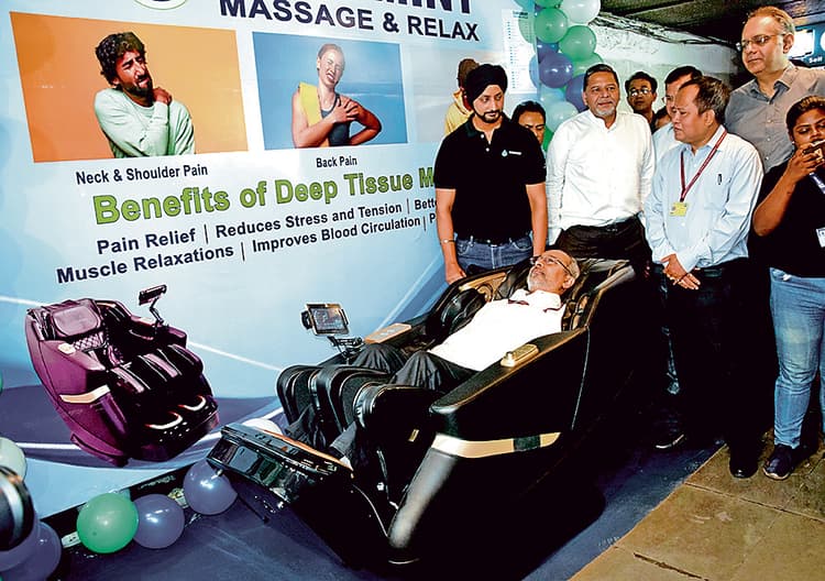 एक और अनूठी पहल के रूप में ब्लू लाइन (दक्षिणेश्वर-न्यू गरिया कॉरिडोर) के एस्प्लेनेड मेट्रो स्टेशन पर रिलैक्सेशन चेयर (आराम कुर्सी) सेवा भी शुरू हुई है. यात्री अब थकान भरी यात्रा के बाद ‘बॉडी मसाज’ के विकल्प का लाभ उठा सकते हैं और आरामकुर्सी पर विश्राम कर सकते हैं.जीएम पी उदय कुमार रेड्डी ने इस सेवा का उद्घाटन किया. लोगों को संबोधन करते हुए जीएम श्री रेड्डी ने कहा कि यह सेवा यात्रियों को कम कीमत पर थकान दूर करने के लिए है. श्री रेड्डी ने कहा कि ऐसी रिलैक्सेशन चेयर सेवा जल्द ही दक्षिणेश्वर मेट्रो स्टेशन पर उपलब्ध करायी जायेगी.डिस्क्लेमर: यह प्रभात खबर समाचार पत्र की ऑटोमेटेड न्यूज फीड है. इसे प्रभात खबर डॉट कॉम की टीम ने संपादित नहीं किया है