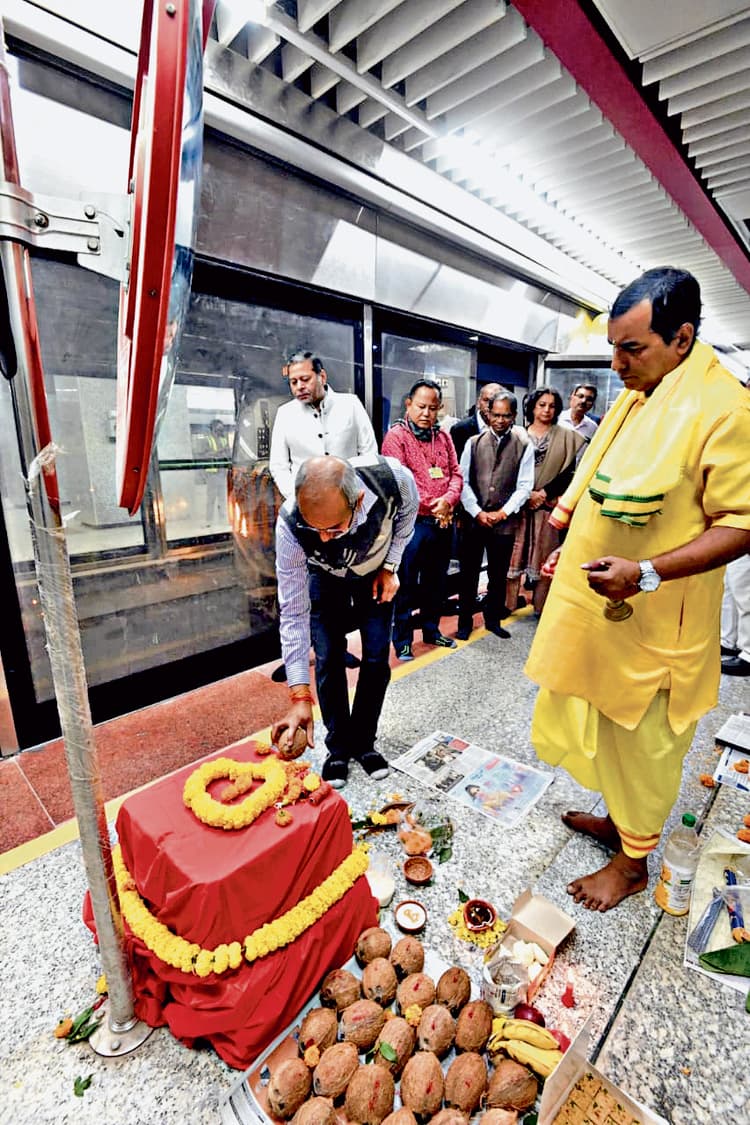 महाप्रबंधक ने मोटरमैन कैब में यात्रा की. जीएम ने नारियल फोड़ कर पंडित द्वारा मंत्रोचार के साथ ट्रायल रन का शुभारंभ हुआ.महाप्रबंधक ने इस सफल ट्रायल रन के लिए सभी को बधाई दी. बाद में उन्होंने मेट्रो रेलवे और केएमआरसीएल के अधिकारियों के साथ बैठक भी की.