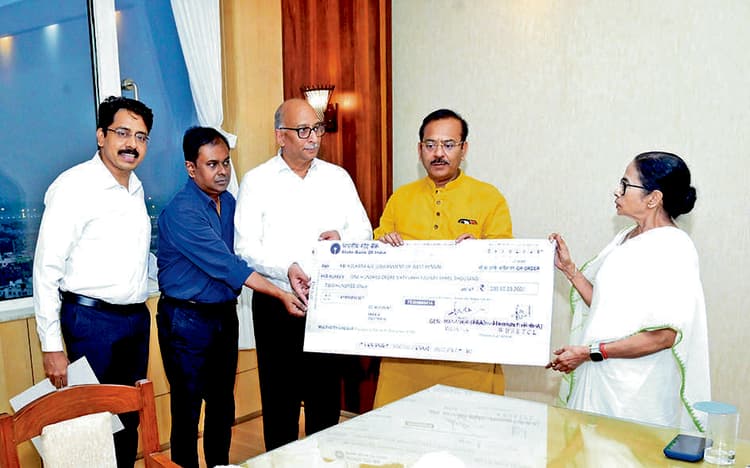 कोलकाता. राज्य के बिजली मंत्री अरूप विश्वास ने राज्य सचिवालय नबान्न में मुख्यमंत्री ममता बनर्जी को दो बिजली कंपनियों की ओर से कुल 207 करोड़ रुपये के लाभांश का चेक सौंपा. जानकारी के अनुसार, राज्य विद्युत विकास निगम लिमिटेड (डब्ल्यूबीपीडीसीएल) की ओर से 106 करोड़ 40 लाख 76 हजार 715 रुपये और राज्य विद्युत पारेषण निगम (डब्ल्यूबीएसईटीसीएल) की ओर से 100 करोड़ 60 लाख 23 हजार 200 रुपये, यानी कुल 207 करोड़ 99 हजार 915 रुपये का चेक नबान्न भवन में मुख्यमंत्री को सौंपा. इस अवसर पर मुख्य सचिव मनोज पंत, ऊर्जा विभाग के प्रधान सचिव शांतनु बसु और राज्य विद्युत विकास निगम के अध्यक्ष पीबी सलीम भी उपस्थित थे.