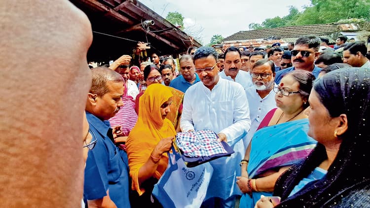लोगों से नाव का प्रयोग न करने का आग्रह : मुख्यमंत्री ने कहा कि नदी का बांध क्षतिग्रस्त होने से इलाके में पानी का स्तर काफी बढ़ गया है. पानी इतना बढ़ गया है, इसलिए मुख्यमंत्री ने लोगों से नाव का प्रयोग नहीं करने का आग्रह किया है. साथ ही आश्वस्त किया है कि अगर किसी का मवेशी फंस गया है, तो राज्य सरकार आपको मवेशी देगी. लेकिन आप अपनी जान जोखिम में न डालें. मुख्यमंत्री ने आश्वस्त करते हुए कहा कि हमारी सरकार भूटानी चाैक, गोपालपुर व मानिकचक के लोगों के साथ है.फिरहाद ने वितरित की राहत सामग्री