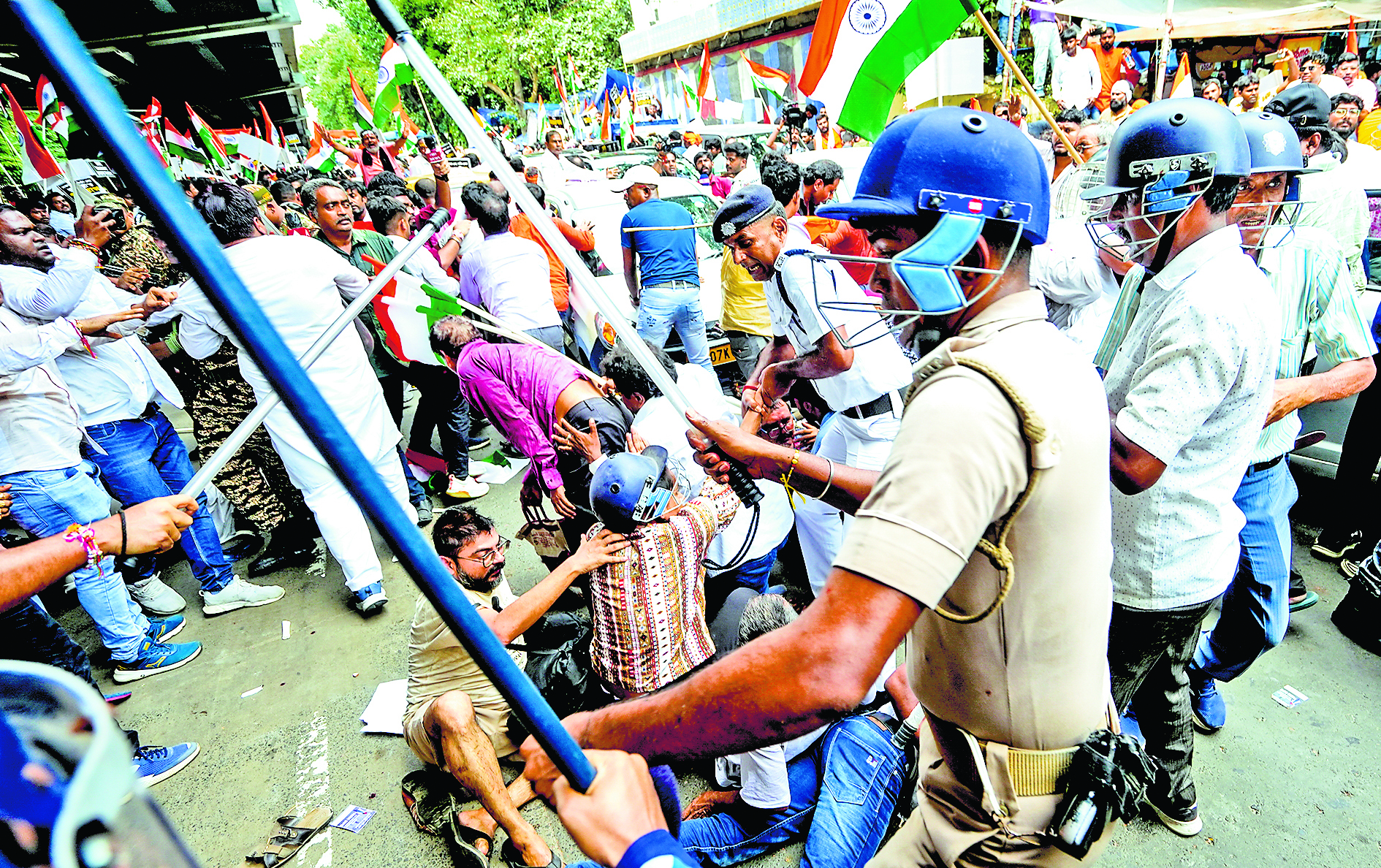 संवाददाता, कोलकाताआरजी कर मेडिकल कॉलेज एवं अस्पताल में एक प्रशिक्षु महिला चिकित्सक से दुष्कर्म व हत्या की जघन्य घटना की पहली बरसी पर शनिवार को पीड़िता के माता-पिता ने इंसाफ की मांग को लेकर राज्य सचिवालय ‘नबान्न चलो अभियान’ का एलान किया था. इस दौरान कोलकाता और हावड़ा में अलग-अलग जगहों पर भारी हंगामा हुआ. सड़कों पर अराजकता का माहौल रहा. पुलिस की कार्रवाई में घायल हुईं पीड़िता की मां को सिर में चोट लगने के कारण अस्पताल में भर्ती कराया गया है. अभया (पीड़िता) के पिता को भी चोटें लगी हैं.बड़ी संख्या में पुलिस की तैनाती के बीच, दोपहर करीब एक बजे धर्मतला के डोरिना क्रॉसिंग से पीड़िता के माता-पिता के नेतृत्व में मार्च नबान्न की ओर बढ़ा, जिसमें विपक्ष के नेता शुभेंदु अधिकारी और भाजपा के कई नेता शामिल हुए. किसी के हाथ में पार्टी का झंडा नहीं था. लोग तिरंगा झंडा लहरा रहे थे. पार्क स्ट्रीट और जवाहरलाल नेहरू रोड की क्रॉसिंग पर पुलिस ने मार्च को रोक दिया, जिससे धक्का-मुक्की की स्थिति पैदा हो गयी. बैरिकेड तोड़ने की कोशिश हुई. प्रदर्शनकारियों ने आरोप लगाया कि पुलिस ने उन्हें रोकते हुए लाठीचार्ज किया. हालांकि, पुलिस ने इससे इनकार किया है. इसके बाद भाजपा विधायक, नेता व अन्य लोग वहीं धरने पर बैठ गये. यह धरना डेढ़ घंटे से भी ज्यादा समय तक चला.