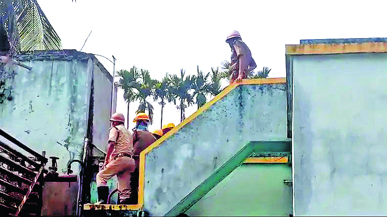 मौके पर पहुंचे दमकल और पुलिसकर्मियों ने संभाली स्थिति