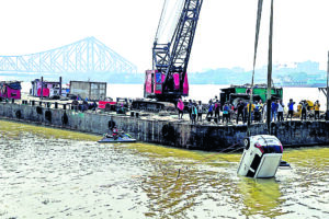 उत्तर कोलकाता के नीमतला घाट स्थित भूतनाथ मंदिर के निकट गुरुवार सुबह चार बजे के करीब एक कार गंगा नदी में समा गयी.