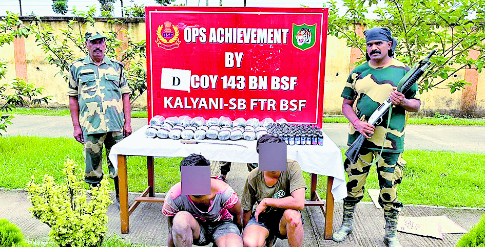 संवाददाता, कोलकाताउत्तर 24 परगना स्थित तराली सीमा चौकी क्षेत्र में गुरुवार की देर रात भारत से बांग्लादेश में गांजा व फेंसिडील की तस्करी रोकने के दौरान तस्करों ने सीमा सुरक्षा बल (बीएसएफ) के जवानों पर धारदार हथियार से हमला कर दिया. हमले में बीएसएफ का एक जवान बुरी तरह से घायल हो गया. हालांकि, बीएसएफ की 143वीं बटालियन के जवानों ने हमले का साहसपूर्वक मुकाबला किया और तस्कर वापस भागने को मजबूर हो गये. बीएसएफ ने उनमें से दो तस्करों को दबोचने में सफलता भी पायी है. घटनास्थल से करीब 10 किलोग्राम गांजा, फेंसिडील की 100 बोतलें और एक धारदार हथियार बरामद किया गया है.भारत-बांग्लादेश की अंतरराष्ट्रीय सीमा है 4,096.7 किलोमीटर लंबी