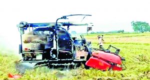कड़ी धूप में धान हार्वेस्टर में लगी आग, मचा हड़कंप