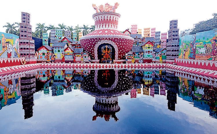पद्मपुकुर यूथ एसोसिएशन इस बार दुर्गापूजा में पर्यावरण जागरूकता का संदेश दे रहा है. उनके पूजा मंडप को दुनिया भर में बढ़ते जल संकट और धीरे-धीरे घटते भूजल स्तर को दर्शाते हुए सजाया गया है. इसका थीम जल चित्र है. आयोजकों ने बताया कि आने वाले दिनों में पेयजल की उपलब्धता दुनिया का सबसे बड़ा संकट बनने जा रहा है, इसलिए इस बार का थीम जल के महत्व और उसके संरक्षण की आवश्यकता को दर्शाता है. मंडप को जल के विभिन्न प्रतीकात्मक रूपों से सजाया गया है, कभी शांत, कभी अशांत. संस्था ने बताया है कि यह थीम न केवल आगंतुकों को कलात्मक सौंदर्य प्रदान करेगी, बल्कि एक महत्वपूर्ण संदेश भी देगी- जल बचाओ, जीवन बचाओ.