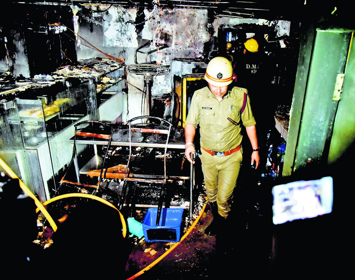 शहर के पार्क स्ट्रीट इलाके में स्थित क्वींस मेंशन नामक एक छह मंजिली इमारत के ग्राउंड फ्लोर में स्थित मिठाइयों की एक दुकान में आग लगने से वहां कुछ समय के लिए अफरातफरी की स्थिति व्याप्त हो गयी.
