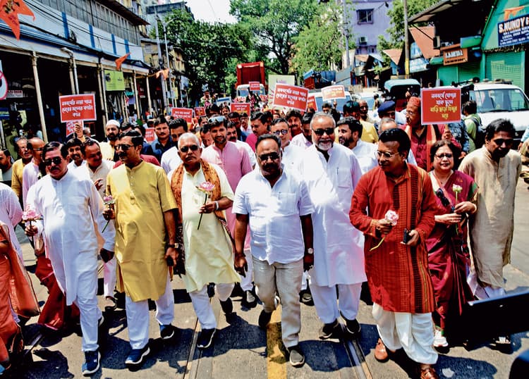 भाजपा ने महानगर में निकाली पदयात्रा कोलकाता. भाजपा ने बांग्ला नववर्ष के मौके पर मध्य कोलकाता में सुबोध मल्लिक स्क्वॉयर से ठनठनिया तक एक रैली निकाली. इसमें आये भाजपा नेता दिलीप घोष ने कहा, ‘आइए बंगाल से तुष्टीकरण वाली तृणमूल सरकार को उखाड़ फेंकने का संकल्प लें, जिसने मुर्शिदाबाद और अन्य जगहों पर इस्लामी जिहादियों के कहर की ओर से आंखें फेर ली हैं तथा राज्य को दूसरे बांग्लादेश में बदल दिया है.’ श्री घोष ने कहा कि मुर्शिदाबाद में हिंदू घर से भाग रहे हैं व तृणमूल उनकी सुरक्षा के लिए कुछ नहीं कर रही है. रैली में पार्टी नेता अग्निमित्रा पॉल और शमिक भट्टाचार्य भी शामिल थे. विपक्ष के नेता शुभेंदु अधिकारी ने तामलुक में एक अन्य रैली में आह्वान किया कि बंगाल के कई हिस्सों में अराजकता और जिहादी तत्वों के हमले की मौजूदा स्थिति समाप्त की जाए और ममता बनर्जी के कुशासन को खत्म किया जाए. तृणमूल ने महानगर में निकाली शोभायात्रा संवाददाता, कोलकाता पश्चिम बंगाल में सत्तारूढ़ तृणमूल कांग्रेस और विपक्षी भारतीय जनता पार्टी (भाजपा) ने मुर्शिदाबाद जिले में हिंसा को लेकर मचे राजनीतिक तूफान के बीच बंगाली नववर्ष के अवसर पर मंगलवार को रंगारंग शोभायात्राएं निकालीं. वरिष्ठ तृणमूल नेता एवं वित्त मंत्री चंद्रिमा भट्टाचार्य ने दक्षिण कोलकाता में पार्टी की रैली का नेतृत्व किया, जिसमें लोगों ने पारंपरिक बंगाली परिधान पहन रखे थे. उनमें बड़ी संख्या में महिलाएं थीं. ढाक (ढोल) की थाप और ”बांग्लार माटी बांग्लार जोल” (हम बंगाल की मिट्टी, बंगाल की नदियों से प्रेम करते हैं) के गायन के बीच चंद्रिमा भट्टाचार्य और अन्य प्रतिभागियों ने रासबिहारी एवेन्यू पर पैदल मार्च किया. इस अवसर पर चंद्रिमा भट्टाचार्य ने कहा कि ‘बांग्ला नववर्ष’ के इस दिन हम उन ताकतों को हराने का संकल्प लें जो बंगाल में हिंदुओं और मुसलमानों तथा अन्य समुदायों के सदियों पुराने सौहार्द और शांतिपूर्ण सह-अस्तित्व को बाधित करना चाहती हैं. भाजपा का सीधे नाम लिये बिना उन्होंने कहा, ‘समाज में नफरत और विभाजन फैलाने वालों को बंगाल के लोग कभी स्वीकार नहीं करेंगे, चाहे वे कितनी भी साजिशें रच लें.’ तृणमूल कांग्रेस की वरिष्ठ नेता व मंत्री डॉ शशि पांजा के नेतृत्व में उत्तर कोलकाता के जोड़ासांकू इलाके में शोभायात्रा निकाली गयीं. जिसमें तृणमूल महिला कांग्रेस की नेता पारंपरिक बंगाली परिधान में शामिल हुईं मुख्यमंत्री ने पोइला बैशाख व बांग्ला दिवस पर दीं शुभकामनाएं कोलकाता. मुख्यमंत्री ममता बनर्जी ने पोइला बैशाख व बांग्ला दिवस के अवसर पर राज्यवासियों को शुभकामनाएं दी है. मुख्यमंत्री ने पोइला बैशाख व बांग्ला दिवस पर दो अलग-अलग संदेश जारी किया. उन्होंने कहा ह