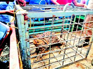औद्योगिक नगरी हल्दिया के आसपास आर्द्रभूमि और जंगल हैं. इन जंगलों में कई प्रजातियों के पशु-पक्षी रहते हैं. इस बार औद्योगिक नगरी हल्दिया में बाघ जैसा एक जानवर देखा गया. इसे लेकर पूरे हल्दिया में हड़कंप मच गया. हल्दिया सिटी सेंटर के पास गोकुल खाद्य तेल कारखाने की दीवार पर लगे लोहे के तार के जाल में वह जानवर फंस गया था. वह बिल्कुल बाघ जैसा दिख रहा था. उसकी दहाड़ भी बाघ जैसी ही थी. इसे देखकर मजदूर और राहगीर पहले तो डर गये. बाद में जानवर की पहचान जानने के बाद सभी ने राहत की सांस ली. बुधवार दोपहर सोमनाथ दास नामक एक मजदूर ने सबसे पहले पश्चिम बंगाल विज्ञान मंच के सूताहाटा हल्दिया विज्ञान केंद्र के वैज्ञानिक और शिक्षक अनूप कुमार पांजा और सर्पदंश विशेषज्ञ व पशुमित्र नकुल चंद्र घन को मामले की जानकारी दी. सूताहाटा हल्दिया विज्ञान केंद्र ने वन विभाग के अधिकारियों को सूचित किया. इसके बाद वन विभाग के अधिकारी मौके पर आकर जानवर को बचाया. लोहे के तार में फंसने से जानवर घायल हो गया था. हल्दिया वन विभाग अधिकारी अतुल प्रसाद दे ने कहा कि खबर मिलने के बाद हमने जानवर को बचाया. स्थानीय लोग डरे हुए थे. उन्हें लगा कि यह बाघ है. दरअसल यह जानवर बाघ जैसा दिखता है. ये ज्यादातर आर्द्रभूमि में देखे जाते हैं. इसे बाघरोल के नाम से जाना जाता है. ये भोजन की तलाश में बाहर आते हैं. यह जानवर राज्य में सबसे ज्यादा संख्या में पूर्व मेदिनीपुर जिले में पाया जाता है. जानवर जख्मी है. उसका उपचार कर इसे जंगल में छोड़ने की व्यवस्था की जायेगी.