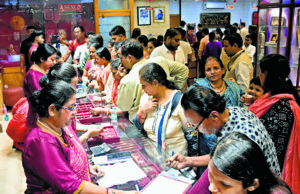 कोलकाता. धनतेरस पर खरीदारी के लिए शनिवार को लोग बाजारों में उमड़ पड़े. कोलकाता के बाजारों में जबरदस्त भीड़ रही. राज्यवासी सोना-चांदी, बर्तन, इलेक्ट्रॉनिक्स और ऑटोमोबाइल जैसी वस्तुएं खरीदते नजर आये. धनतेरस के मौके पर इलेक्ट्रॉनिक, ऑटोमोबाइल, बर्तन और गहनों की दुकानों पर लोगों की भीड़ उमड़ी. जीएसटी दरों में कटौती के बाद बाजारों की रौनक और बढ़ गयी. कोलकाता के मौलाली में गहने की एक दुकान में खरीदारी करते लोग. देखें पेज 05 भी