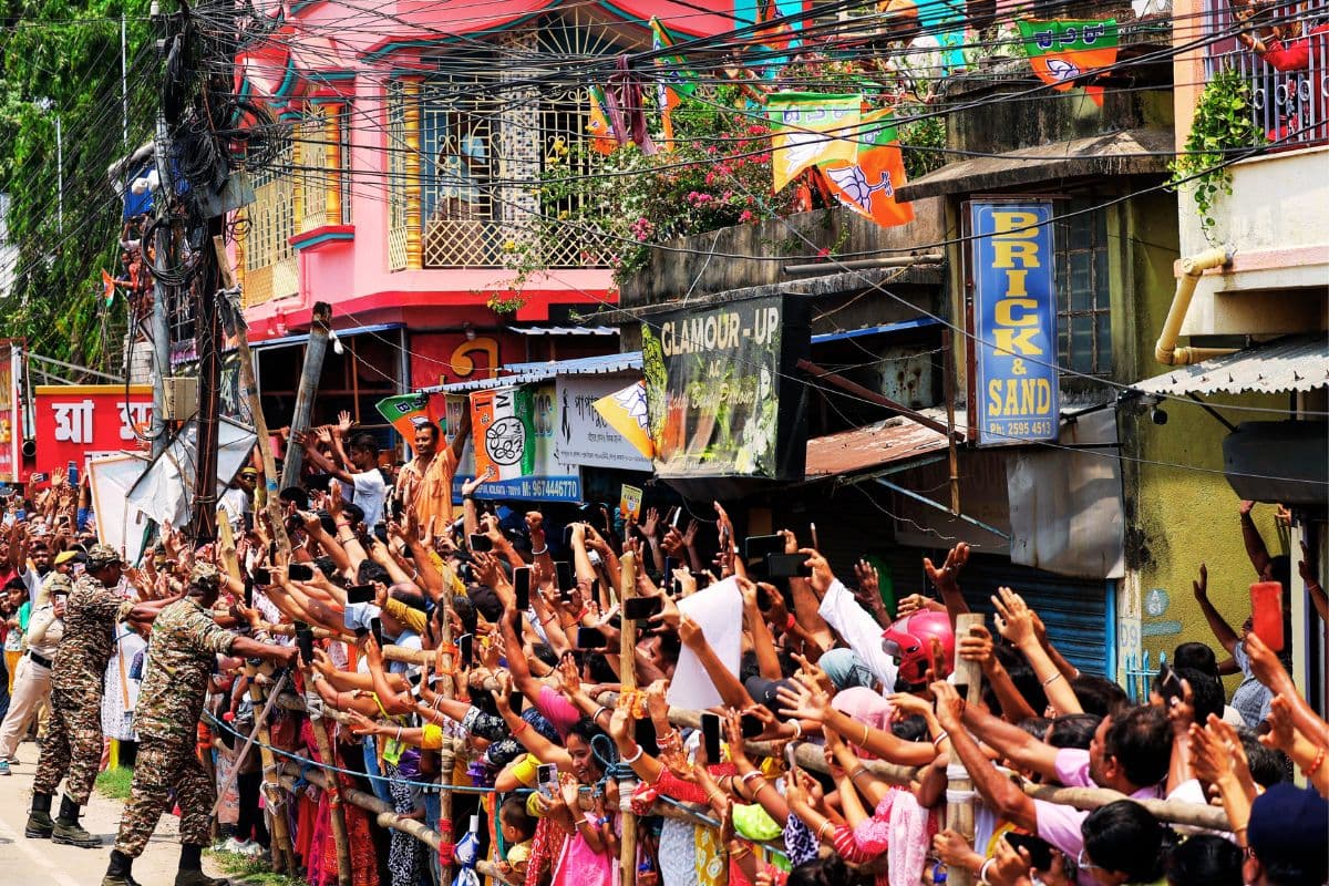 पानीहाटी और जादवपुर में चुनावी रैलियों को संबोधित करने के बाद पीएम मोदी जब दमदम की सड़कों पर उतरे, तो नजारा देखने लायक था. ‘मोदी-मोदी’ के नारे से पूरा इलाका गूंज उठा.