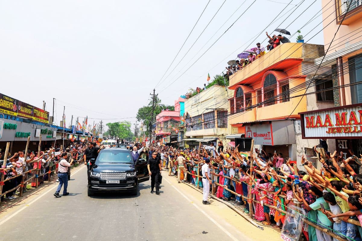 मोदी-मोदी की गूंज और शंखध्वनि के बीच प्रधानमंत्री ने अपनी बुलेटप्रूफ कार से जनता का अभिवादन स्वीकार किया. रोड शो के बाद पीएम ने ‘एक्स’ पर लिखा- दमदम का यह स्वागत ‘असाधारण’ है. बंगाल से अब तृणमूल की विदाई तय है.