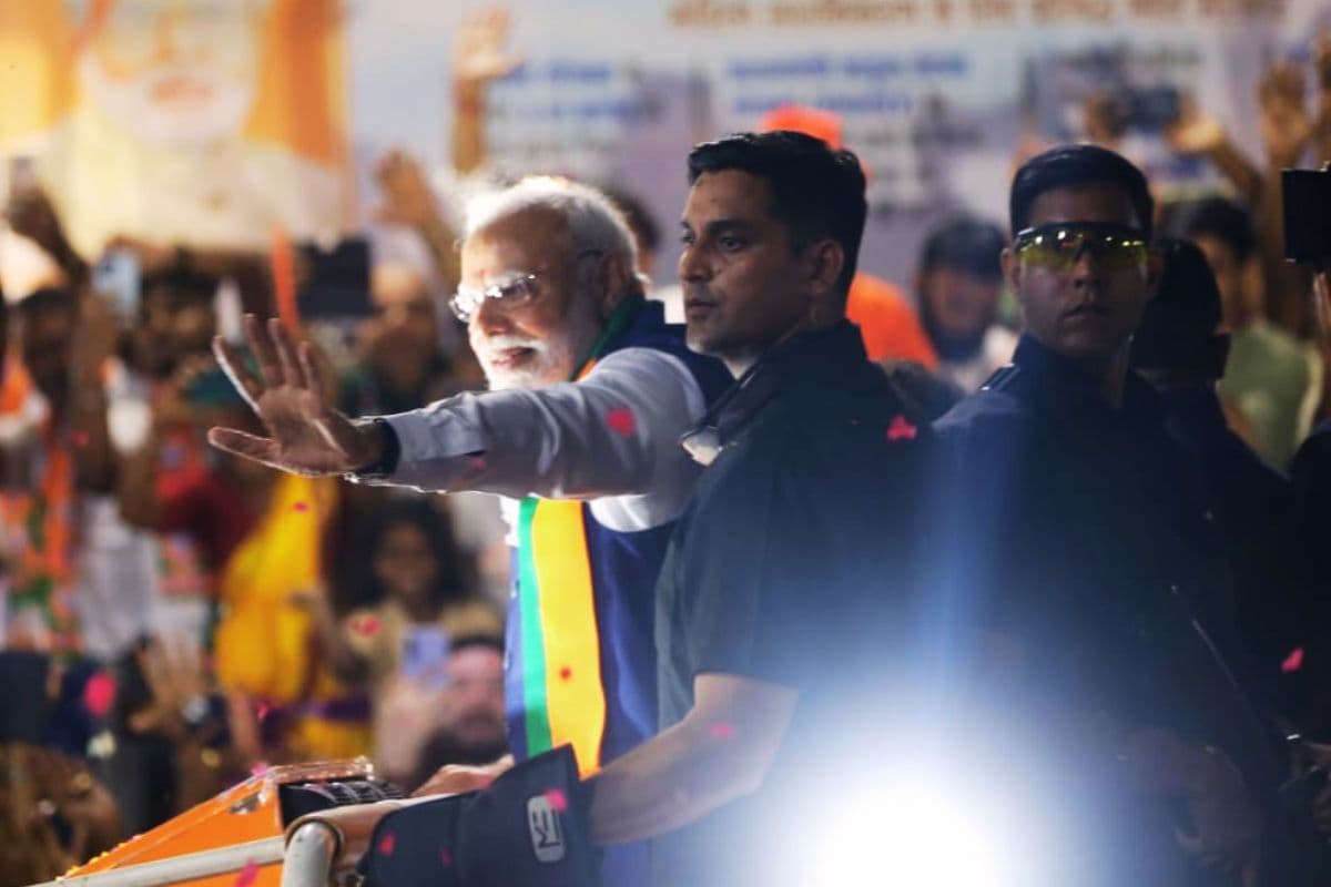 प्रधानमंत्री का रोड शो शाम के वक्त जब शुरू हुआ, तो नजारा देखने लायक था. मोदी एक विशेष भगवा रंग के वाहन पर सवार थे. इसे गेंदे के फूलों, उनकी विशाल तस्वीरों और भाजपा के चुनाव चिह्न ‘कमल’ के कटआउट से भव्य तरीके से सजाया गया था.
