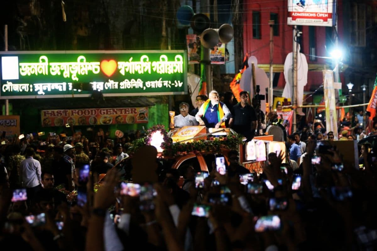 कोलकाता में रोड शो करते प्रधानमंत्री नरेंद्र मोदी.