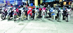गिरफ्तार आरोपियों के पास से 10 बाइकें जब्त, इनके मालिकों की तलाश कर रही पुलिस