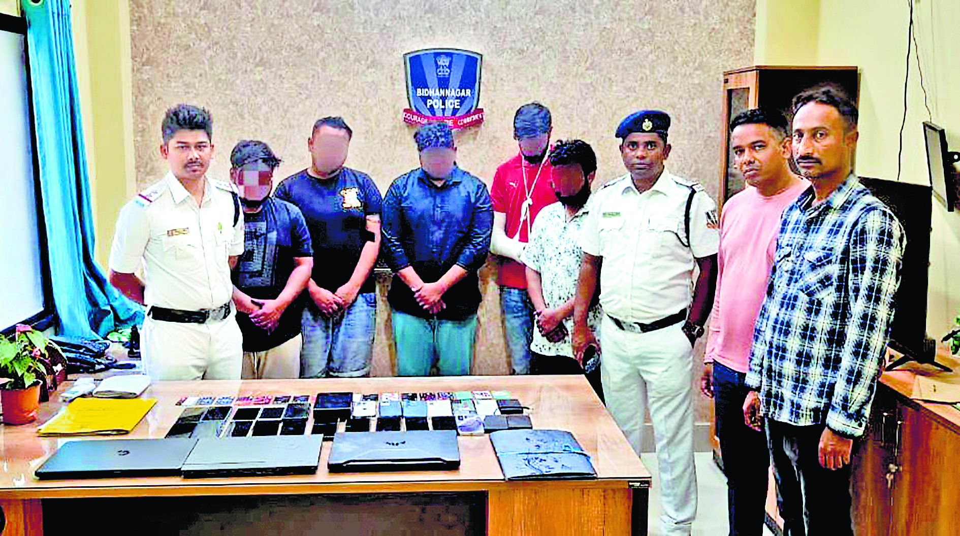 विधाननगर के नारायणपुर थाना क्षेत्र के सौरव गांगुली एवेन्यू के गणपति कुंज स्थित एक फ्लैट में छापेमारी कर पुलिस ने एक फर्जी कॉल सेंटर का भंडाफोड़ कर पांच लोगों को गिरफ्तार किया है. कॉल सेंटर से इलेक्ट्रॉनिक उपकरण, फर्जी लेटर और कई चेक जब्त किये गये हैं. साथ ही दर्जनों मोबाइल, तीन लैपटॉप और कई दस्तावेज जब्त किये गये हैं.