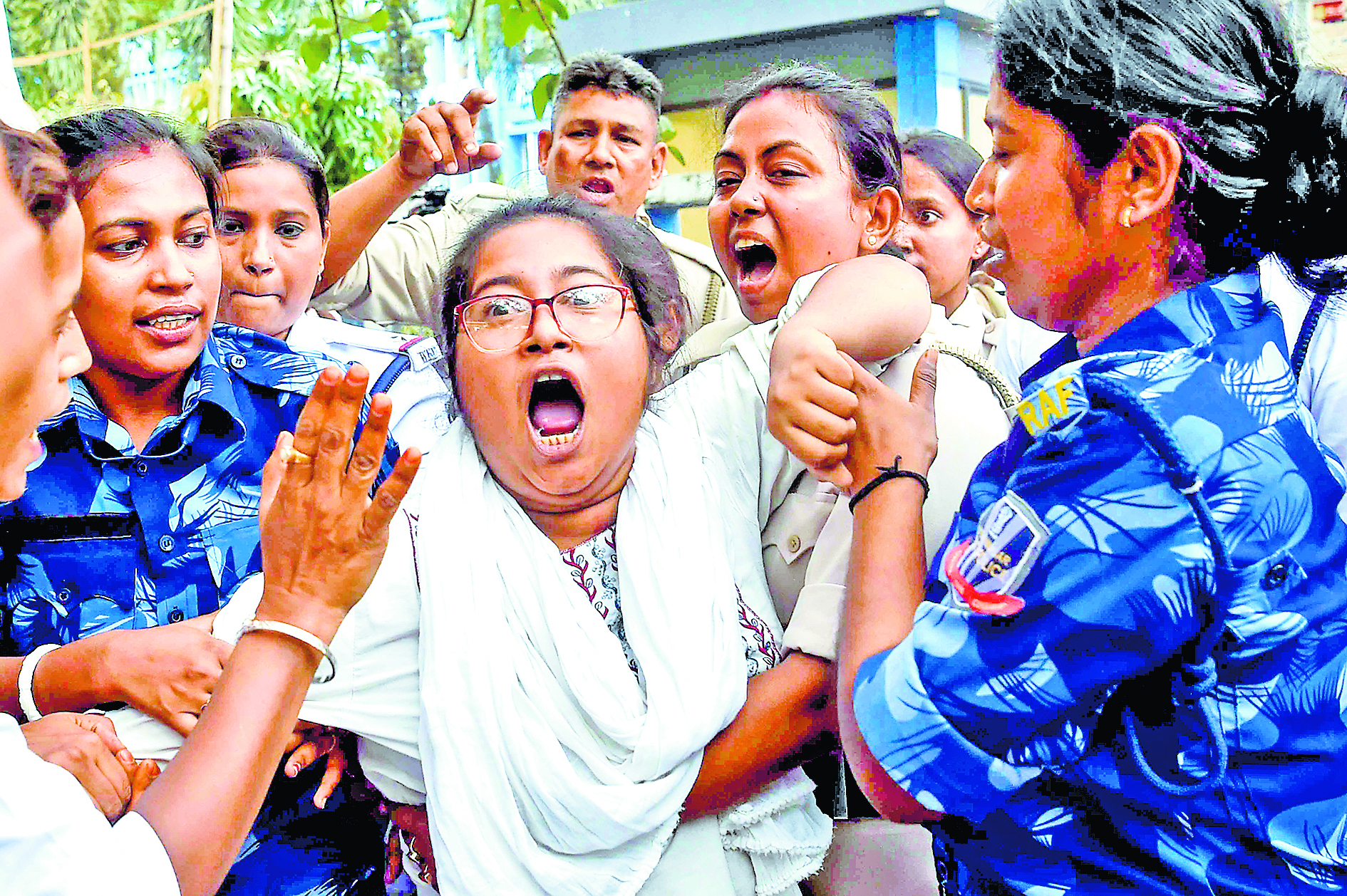 एसएससी के 2016 की नियुक्ति प्रक्रिया में कथित भ्रष्टाचार के विरोध में किया गया प्रदर्शन साल्टलेक. भाजपा की छात्र इकाई एबीवीपी द्वारा सॉल्टलेक के करुणामयी से पश्चिम बंगाल स्कूल सेवा आयोग (एसएससी) के मुख्यालय विकास भवन तक निकाले जा रहे विरोध मार्च को शुक्रवार को पुलिस ने रोक दिया, जिसके बाद दोनों पक्षों के बीच तीखी बहस हुई. यह प्रदर्शन 2016 एसएससी भर्ती प्रक्रिया में कथित भ्रष्टाचार के विरोध में किया गया. दरअसल एक दिन पहले ही उच्चतम न्यायालय ने लगभग 26,000 शिक्षण और गैर-शिक्षण कर्मचारियों की नियुक्तियों को रद्द करने के कलकत्ता उच्च न्यायालय के फैसले को बरकरार रखा था. अखिल भारतीय विद्यार्थी परिषद (एबीवीपी) के समर्थक राज्य सरकार के खिलाफ नारेबाजी करते हुए तथा स्कूल भर्तियों में कथित भ्रष्टाचार का आरोप लगाते हुए सड़क पर बैठ गए, जिसके बाद पुलिस ने उन्हें जबरन हटा दिया. छात्रों ने पुलिस से बचने के लिए अपना रास्ता बदलने का भी प्रयास किया, लेकिन पुलिस ने पहले ही विकास भवन की ओर जाने वाली सड़कों को घेर लिया था और प्रदर्शनकारियों को आगे बढ़ने से रोकने के लिए अवरोधक लगा दिए थे. भाजपा के कई नेताओं और कार्यकर्ताओं को पुलिस के साथ बहस करते भी देखा गया. प्रदर्शन के दौरान एक छात्र नेता ने चिल्लाते हुए कहा : यह चोरों की सरकार है. उन्होंने नौकरियां बेचकर हजारों योग्य उम्मीदवारों का भविष्य बर्बाद कर दिया. हम बदलाव चाहते हैं.