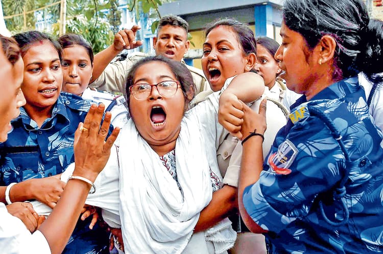 एसएससी के 2016 की नियुक्ति प्रक्रिया में कथित भ्रष्टाचार के विरोध में किया गया प्रदर्शन साल्टलेक. भाजपा की छात्र इकाई एबीवीपी द्वारा सॉल्टलेक के करुणामयी से पश्चिम बंगाल स्कूल सेवा आयोग (एसएससी) के मुख्यालय विकास भवन तक निकाले जा रहे विरोध मार्च को शुक्रवार को पुलिस ने रोक दिया, जिसके बाद दोनों पक्षों के बीच तीखी बहस हुई. यह प्रदर्शन 2016 एसएससी भर्ती प्रक्रिया में कथित भ्रष्टाचार के विरोध में किया गया. दरअसल एक दिन पहले ही उच्चतम न्यायालय ने लगभग 26,000 शिक्षण और गैर-शिक्षण कर्मचारियों की नियुक्तियों को रद्द करने के कलकत्ता उच्च न्यायालय के फैसले को बरकरार रखा था. अखिल भारतीय विद्यार्थी परिषद (एबीवीपी) के समर्थक राज्य सरकार के खिलाफ नारेबाजी करते हुए तथा स्कूल भर्तियों में कथित भ्रष्टाचार का आरोप लगाते हुए सड़क पर बैठ गए, जिसके बाद पुलिस ने उन्हें जबरन हटा दिया. छात्रों ने पुलिस से बचने के लिए अपना रास्ता बदलने का भी प्रयास किया, लेकिन पुलिस ने पहले ही विकास भवन की ओर जाने वाली सड़कों को घेर लिया था और प्रदर्शनकारियों को आगे बढ़ने से रोकने के लिए अवरोधक लगा दिए थे. भाजपा के कई नेताओं और कार्यकर्ताओं को पुलिस के साथ बहस करते भी देखा गया. प्रदर्शन के दौरान एक छात्र नेता ने चिल्लाते हुए कहा : यह चोरों की सरकार है. उन्होंने नौकरियां बेचकर हजारों योग्य उम्मीदवारों का भविष्य बर्बाद कर दिया. हम बदलाव चाहते हैं.