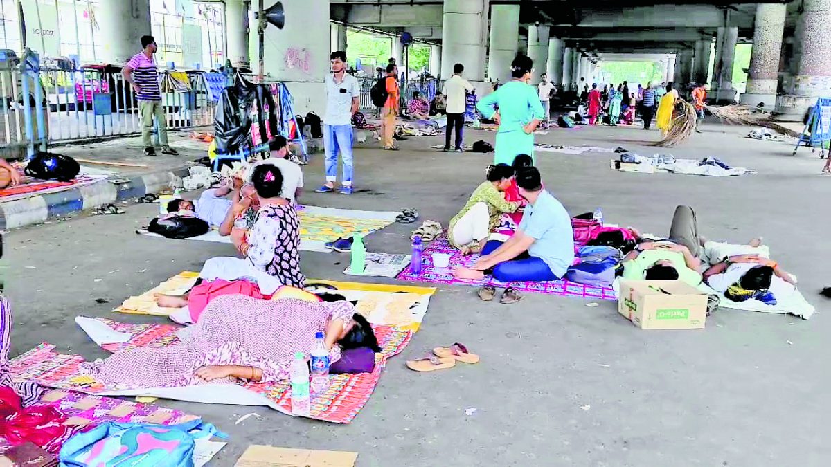 राज्य शिक्षा विभाग के मुख्यालय विकास भवन के पास सुप्रीम कोर्ट के आदेश के बाद नौकरी गंवाने वाले शिक्षकों और गैर शिक्षण कर्मियों का धरना रविवार को लगातार चौथे दिन भी जारी रहा.