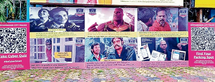 विधाननगर पुलिस कमिश्नरेट ने दुर्गा पूजा के दौरान लोगों को साइबर क्राइम के प्रति जागरूक करने का निर्णय लिया है. इसके लिए कई पूजा पंडालों एवं प्रमुख स्थानों का चयन किया है, जहां संगीत, फिल्म से संबंधित पोस्टरों एवं कार्टून का साइबर वॉल बना कर लोगों को जागरूक किया जायेगा.