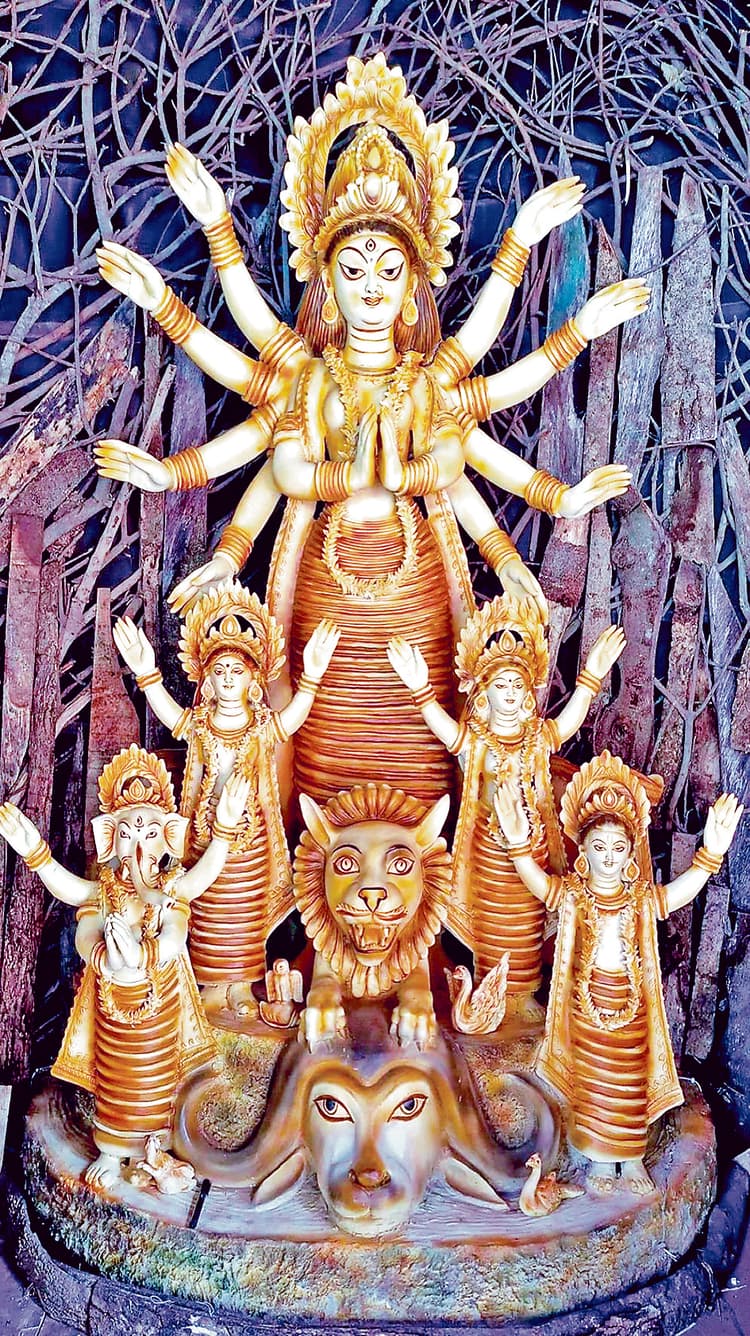 कलाकार प्रबीर द्वारा इस थीम को बनाने में बिचाली, पेड़ों की छाल सहित अन्य प्राकृतिक सामग्री का उपयोग किया गया है. पंडाल को सजाने के साथ ‘पेड़ बचेंगे, तो लोग बचेंगे’ का स्लोगन दिया गया है.