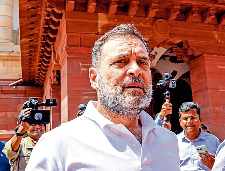 New Delhi: Leader of Opposition in the Lok Sabha Rahul Gandhi during the Budget session of Parliament, in New Delhi, Wednesday, March 26, 2025. (PTI Photo/Kamal Singh) (PTI03_26_2025_000112B)