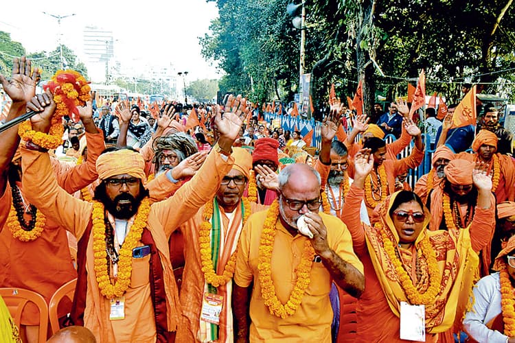 बांग्लादेश में हिंदुओं पर जारी हमले के खिलाफ एवं संत चिन्मय कृष्ण दास की अविलंब रिहाई की मांग को लेकर बंगाली हिंदू सुरक्षा समिति के बैनर तले सोमवार को रैली निकाली गयी. दोपहर को सियालदह से रानी रासमणि रोड तक निकली रैली में साधू-संतों के साथ सैकड़ों लोग शामिल हुए. रैली में प्रदेश भाजपा के वरिष्ठ नेता एवं पूर्व सांसद दिलीप घोष, पूर्व सांसद अर्जुन सिंह, भाजपा नेता जितेंद्र तिवारी, पूर्व जस्टिस व सांसद अभिजीत गांगुली भी थे. प्रदर्शनकारियों ने चिन्मय कृष्ण दास को रिहा करने की मांग को लेकर नारे लगाये. साथ ही बांग्लादेश की सरकार से वहां हिंदुओं पर जारी अत्याचार को बंद कराने की मांग की. उन्होंने कहा कि दास की गिरफ्तारी अनुचित है. बांग्लादेश में हिंदुओं एवं मंदिरों पर हमले के खिलाफ आवाज उठाने के कारण साजिश के तहत चिन्मय कृष्ण दास को निशाना बनाया गया है.विधाननगर मेला समिति ने बांग्लादेशी व्यापारियों पर लगाया प्रतिबंध